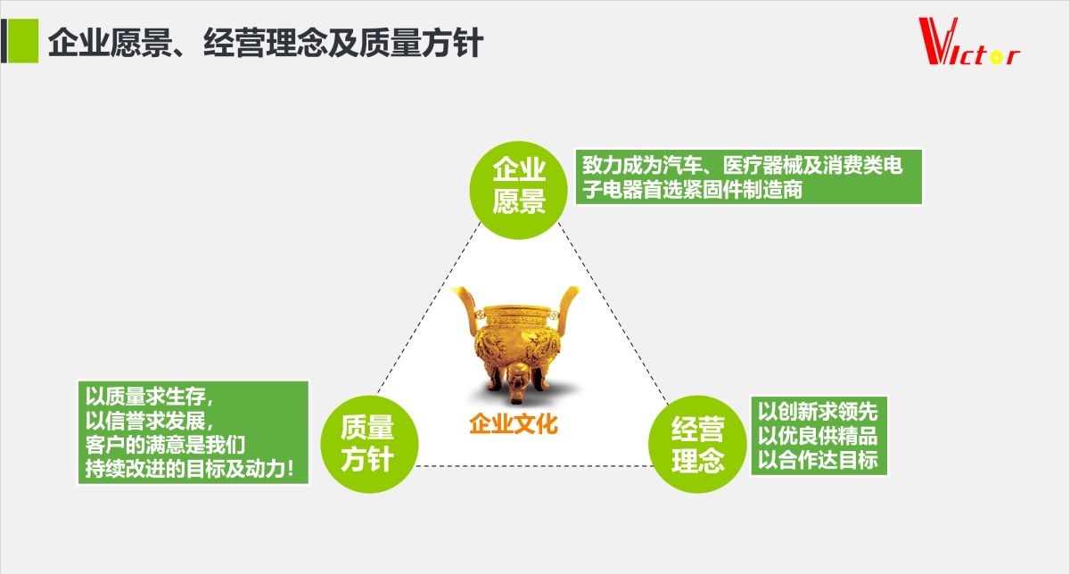 以人為本、品質至上、誠信創新、務實專注、顧客滿意、公司滿意、員工滿意